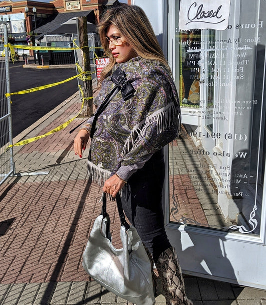 Shawl pink silk with purple fox trim