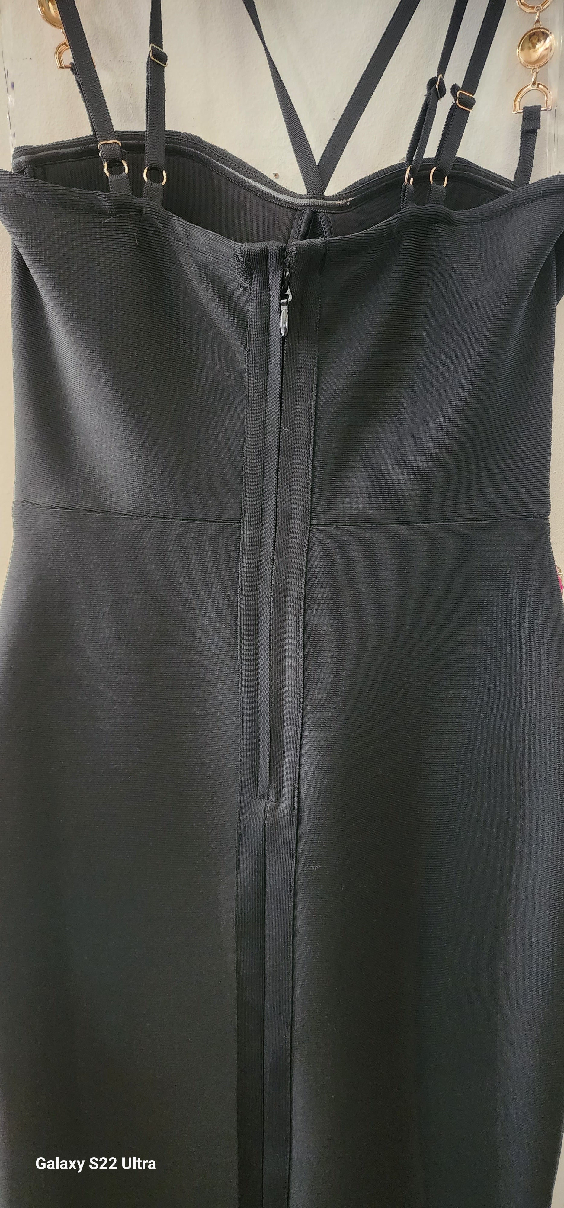 Introducing our breathtaking Dress Bustier, a luxurious body con midi dress. This dress features sophisticated spaghetti straps with elegant gold plated hardware, and a stunning bustier style bodice adorned with dazzling rhinestone appliques in a variety of vibrant colors. The crystal bows and fan detail add the perfect touch of glamour to this must-have piece. Elevate your wardrobe with this exclusive and tasteful dress.