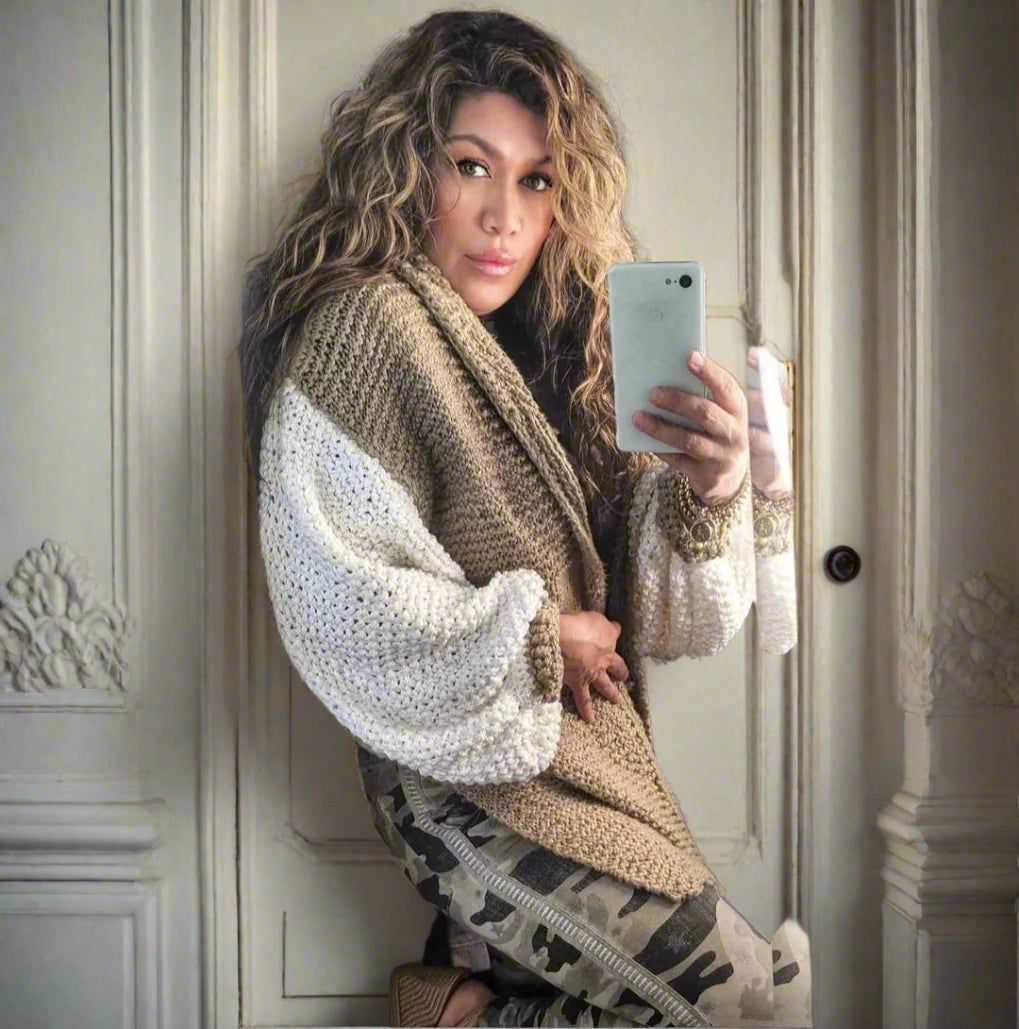Wear luxury with our handmade white sleeve beige sweater. Made with organic cotton yarn, this cozy and stylish sweater boasts a unique two-tone design. Elevate your wardrobe with this exclusive piece that will keep you warm and fashionable all season long.